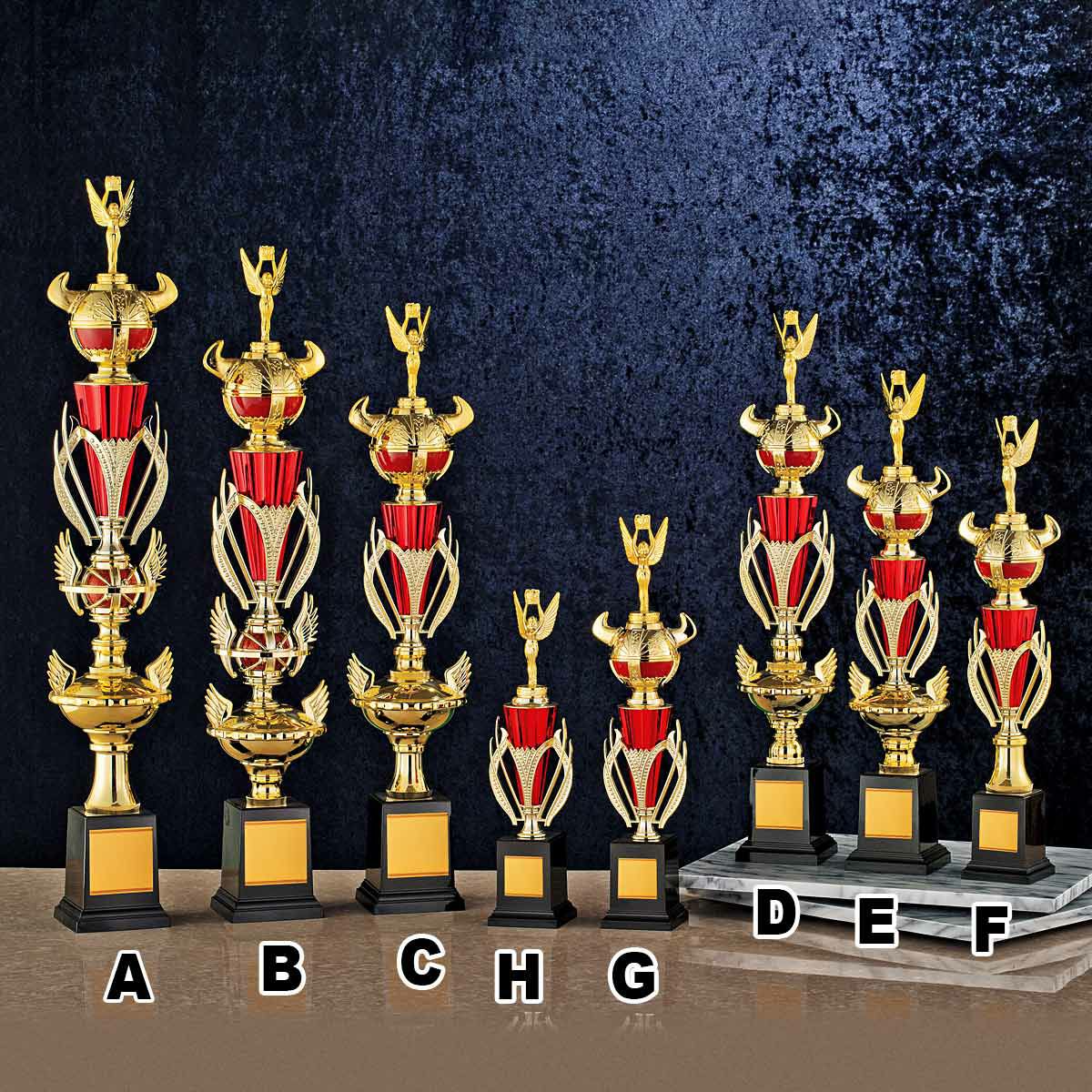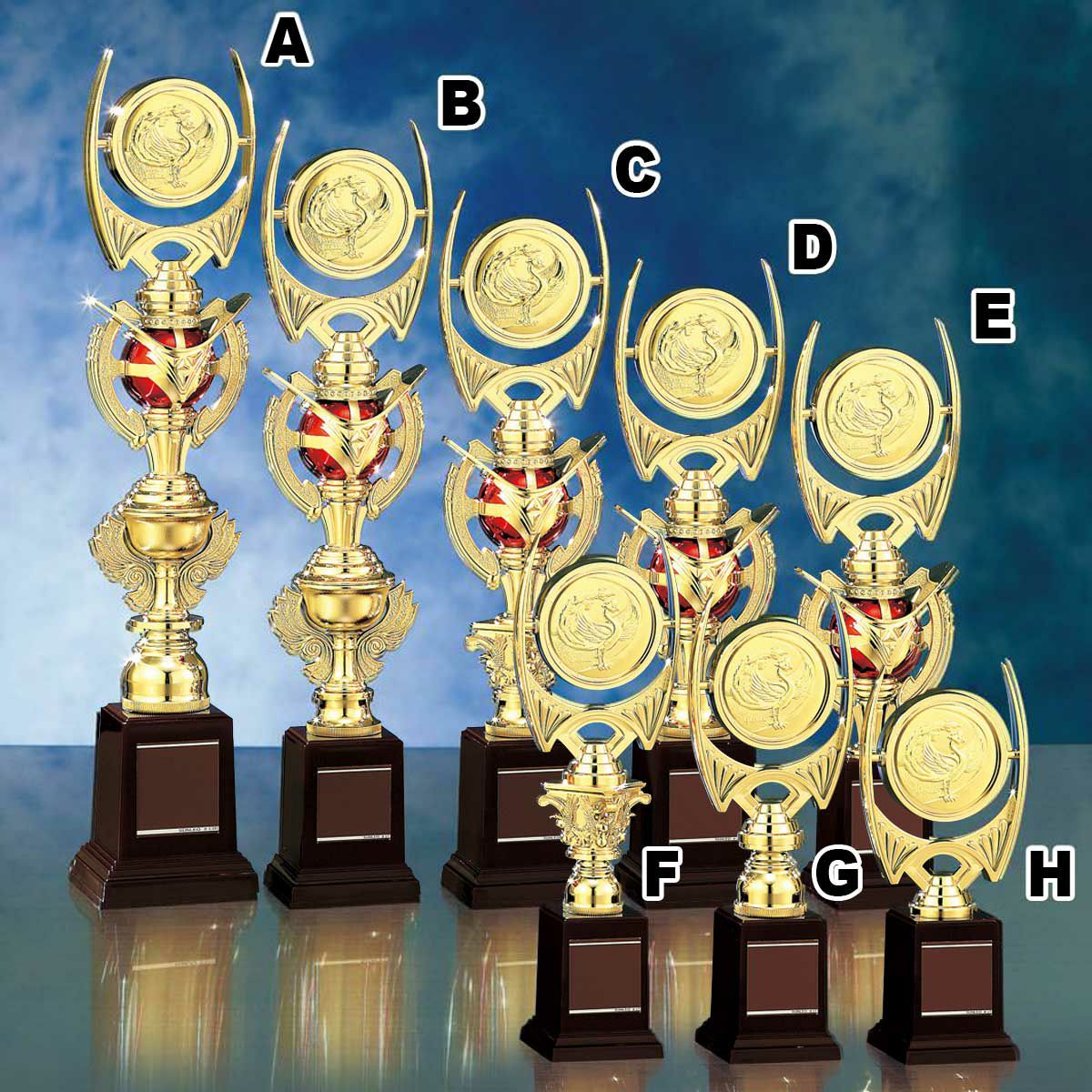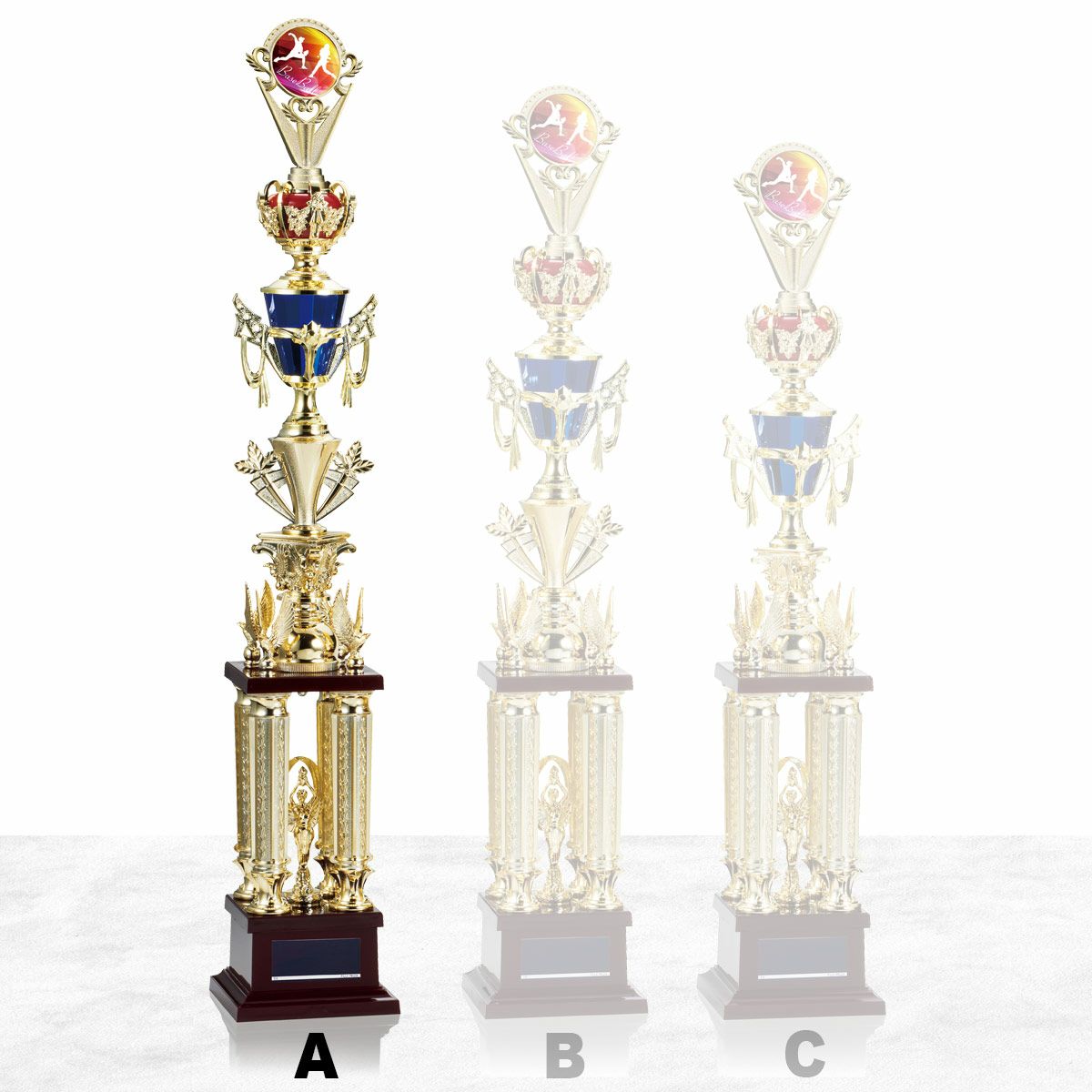 抜群の存在感!4本柱(3本柱)の高さ1m前後のビッグなジャンボトロフィーを集めました。勝利の感動、至福の瞬間をトロフィー手にする人とともに。