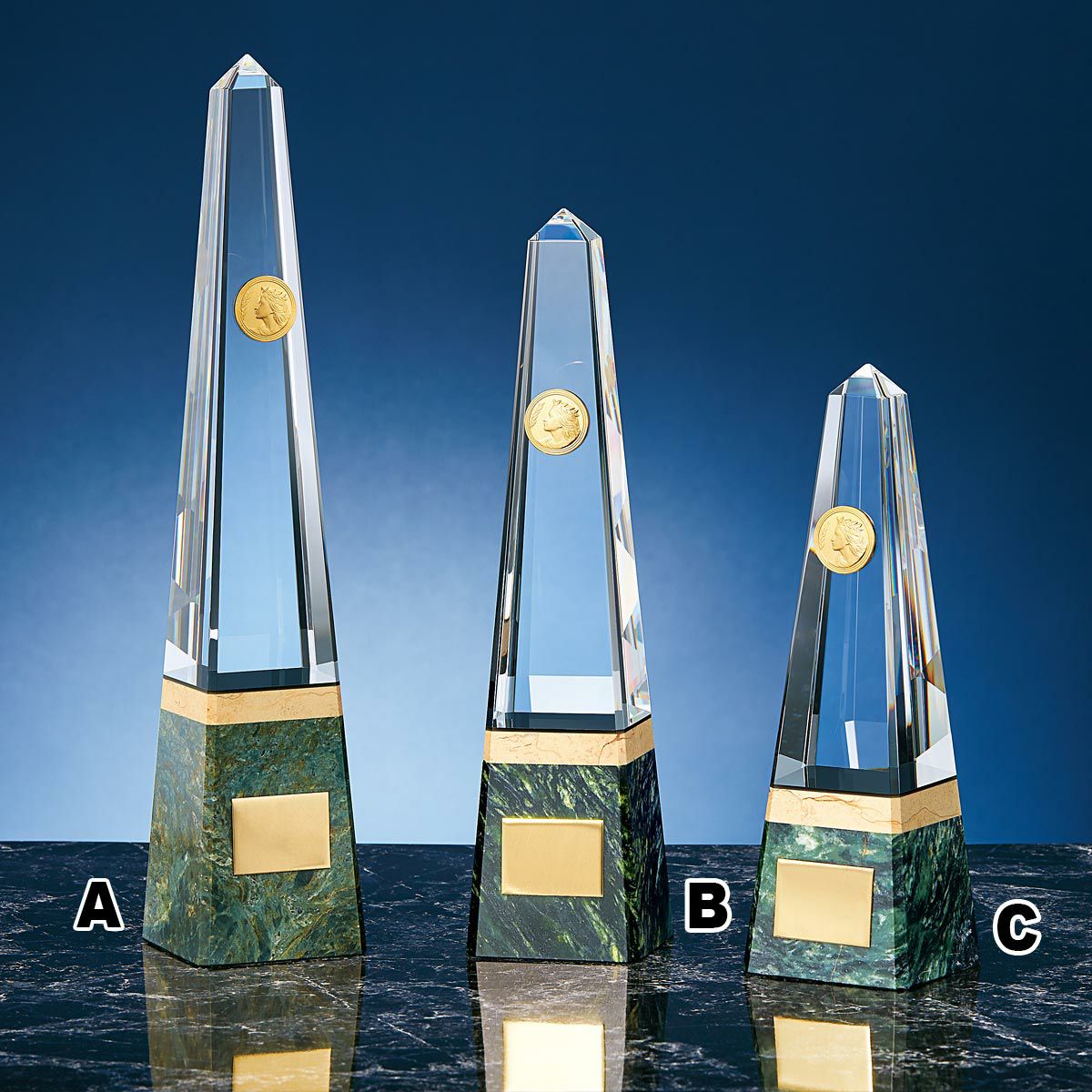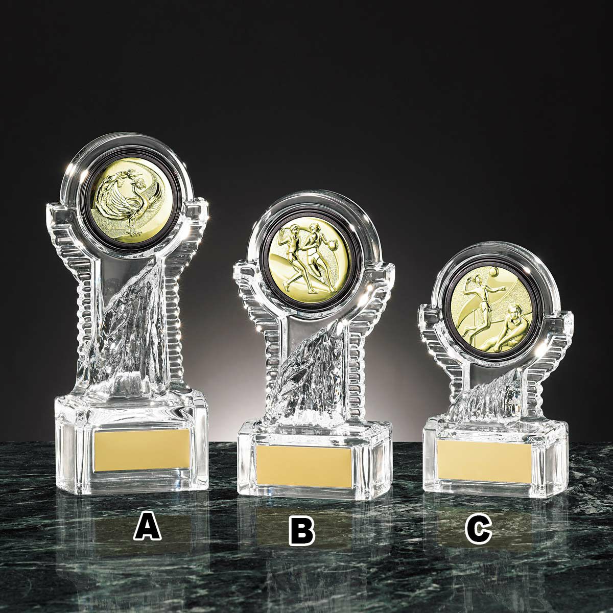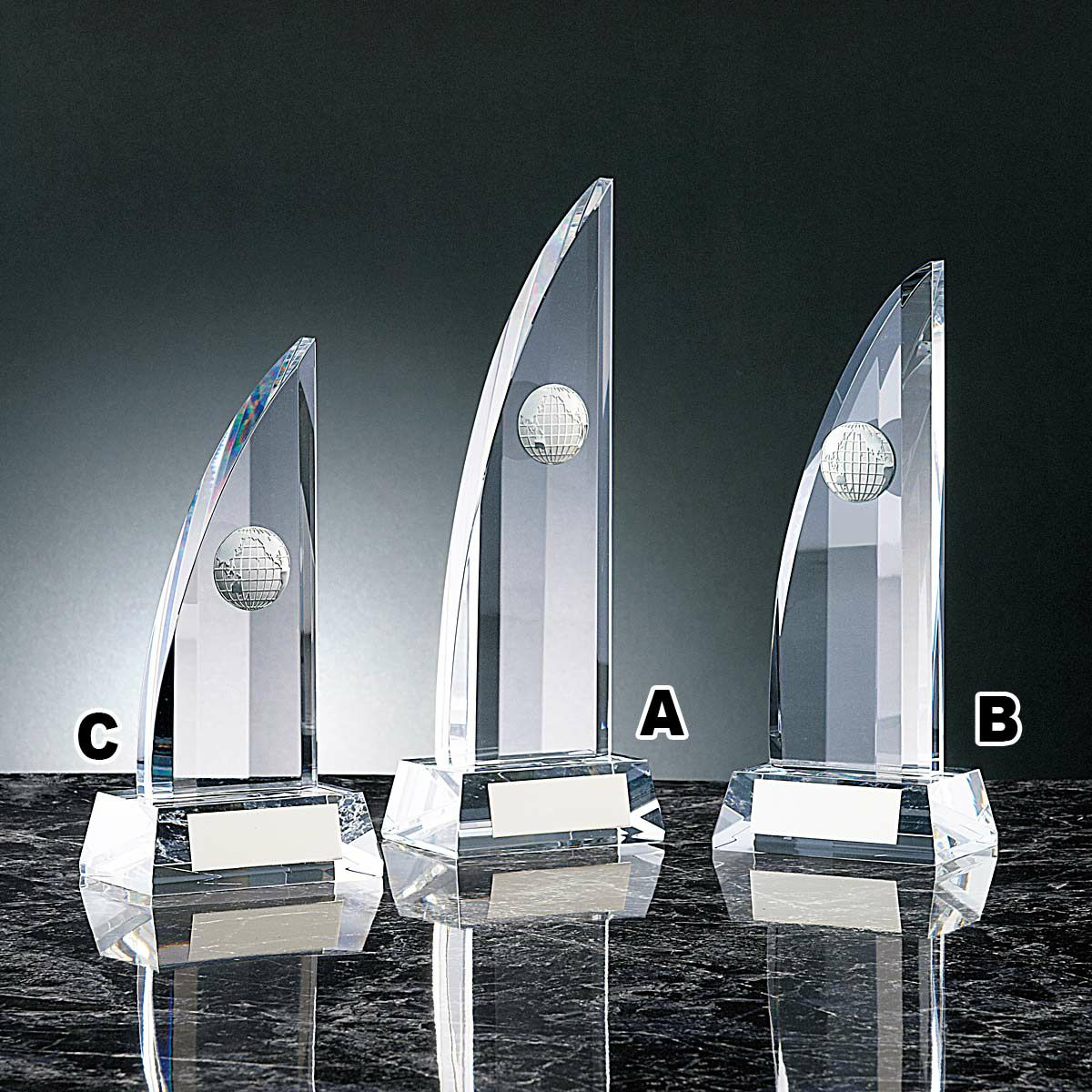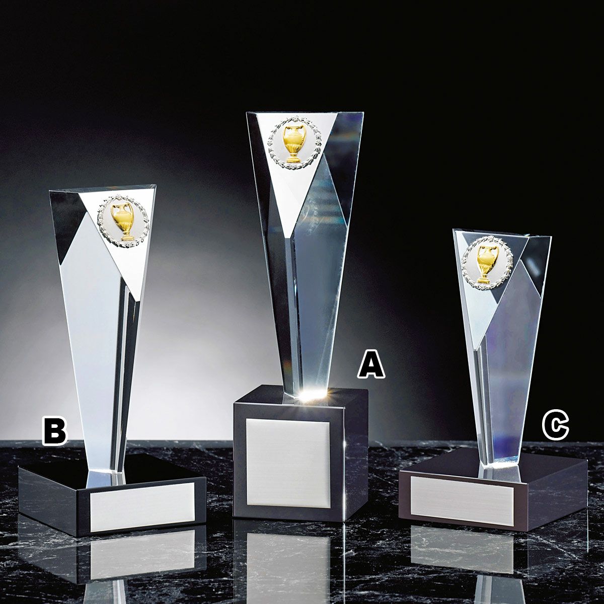 トロフィー全体がクリスタル製のもの天然石とクリスタルとの組み合わせなど、いずれの場合も重量感がありシンプルかつ美しく、人気のトロフィーとなっています。ご要望に合わせサイズや形状も豊富に取り揃えています。